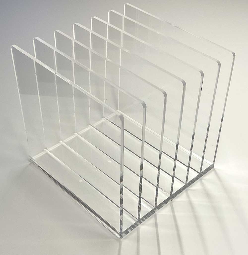 Den Schallplattenständer 2.0 sozusagen. Für bis zu 30 Platten. Stabil, standhaft, schön. Aus glasklarem Acryl.