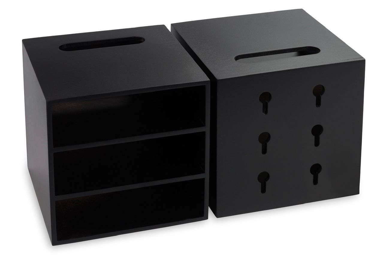 Diese Ablagebox ist nur 15 x 15 x 15 cm groß, hat aber Platz für mehrere Handys oder Smartphones, für iWatch, Fitnesstracker oder EarPods. In drei Fächern kann man mehrere Geräte an einem Ort ablegen und - durch die Kabelöffnungen und -führungen an der Rückseite - auch zum Aufladen ablegen. Sozusagen die Garage für Smarthones & Co. So muss man nicht immer suchen, wo die diversen Geräte gerade liegen. Ideal für Familien mit Kindern und mehreren Handys oder Zubehör. Außerdem sehen sie attraktiv aus und sind in fünf Farben erhältlich. Schöner Blickfang im Büro, Homeoffice oder zuhause.